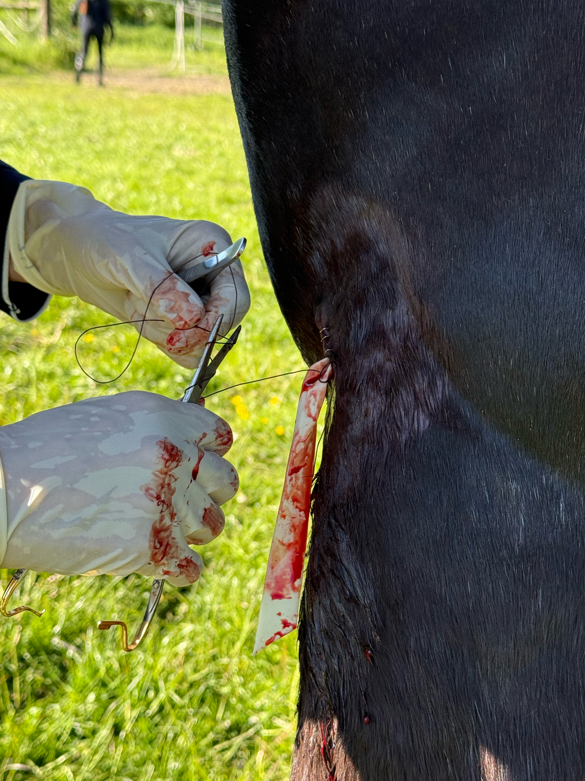 Für Operationen am stehenden Patienten, zum Beispiel einer Wundnaht wird das Pferd, in den meisten Fällen mit Beruhigungsmitteln und einer örtlichen Betäubung versorgt.